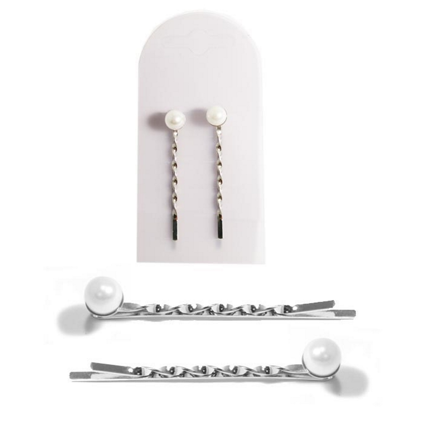 Lot de deux épingles à cheveux en métal et plastique.