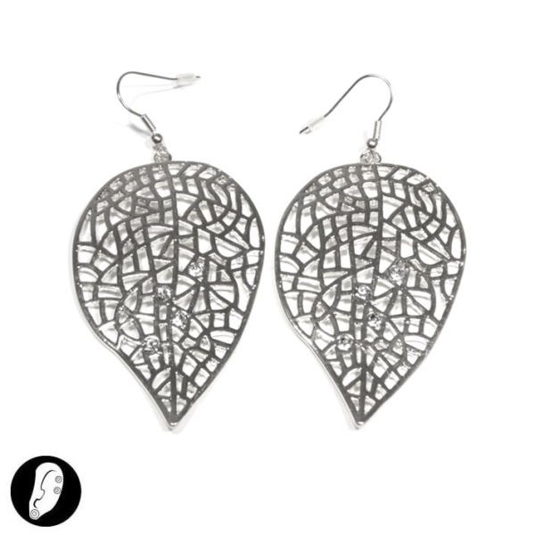 Boucles d'oreilles fantaisie en métal argenté et cristal.