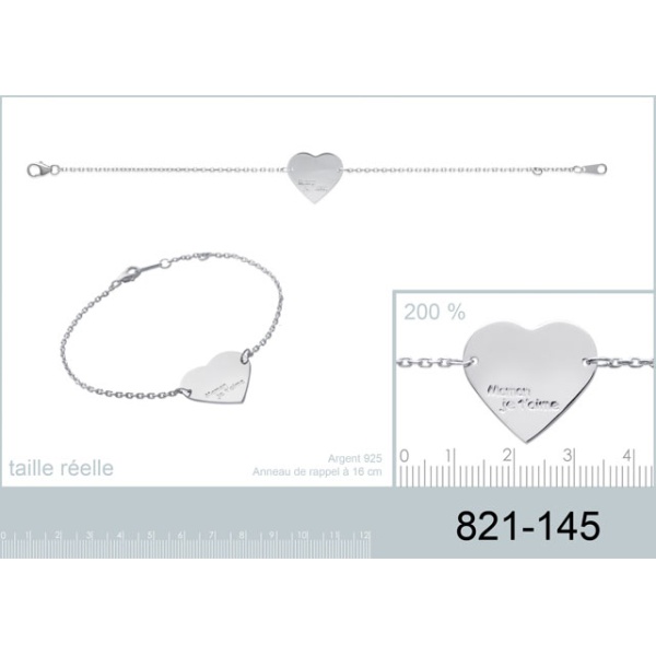Bracelet en argent 925/000 où est inscrit Maman je t'aime.