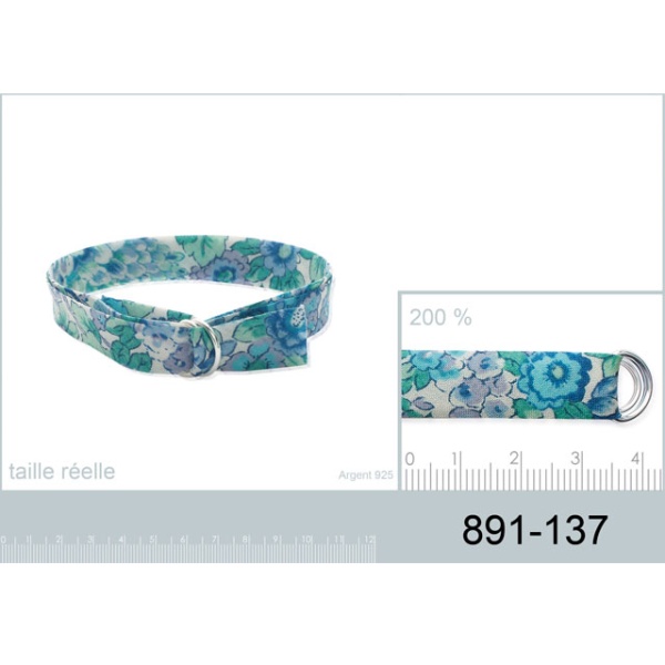 Bracelet en argent 925/000 et textile motif Liberty.