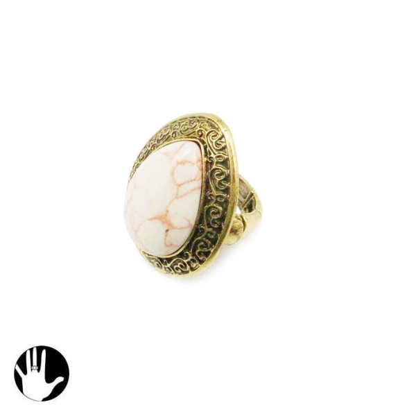 Bague fantaisie en métal doré vieilli et pierre naturelle.