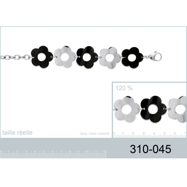 - Matière(s) Acier, Ruthénium. L'acier utilisé dans la bijouterie existe sous plusieurs qualités. Nous utilisons principalement la qualité 316L, qualité qui est utilisée en chirurgie. Cet acier est donc inoxydable et reste très résistant.