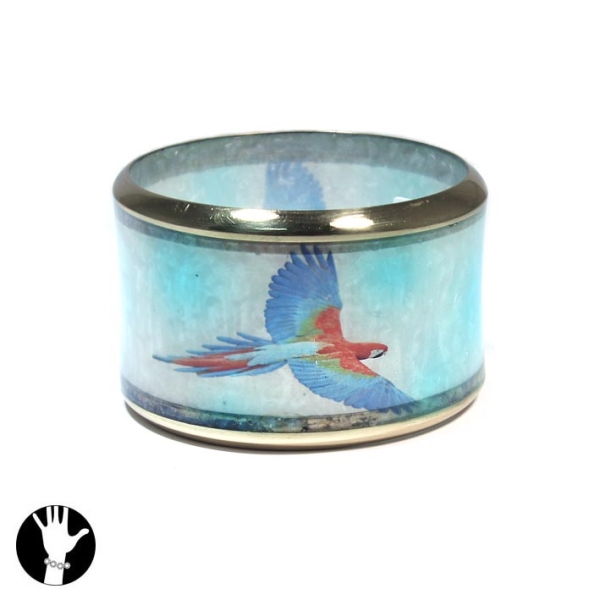 Description Bracelet fantaisie rigide en résine. Perroquet. Cliquez sur une matière, un thème, une couleur ou une collection pour voir tous les articles associés.