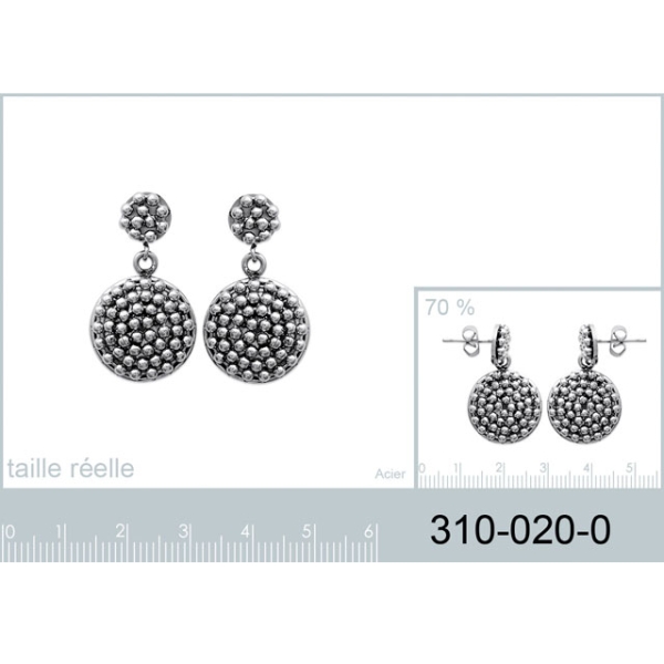 Description Boucles d'oreilles en acier. Largeur 16 mm Hauteur 28 mm Matière(s) Acier . L'acier utilisé dans la bijouterie existe sous plusieurs qualités. Nous utilisons principalement la qualité 316L, qualité qui est utilisée en chirurgie. Cet acier est donc inoxydable et reste très résistant. Fermoir Tiges poussettes Couleur(s) dominante(s) Argenté Public Adulte . Genre Femme . Saison Indémodable . Cliquez sur une matière, un thème, une couleur ou une collection pour voir tous les articles associés.