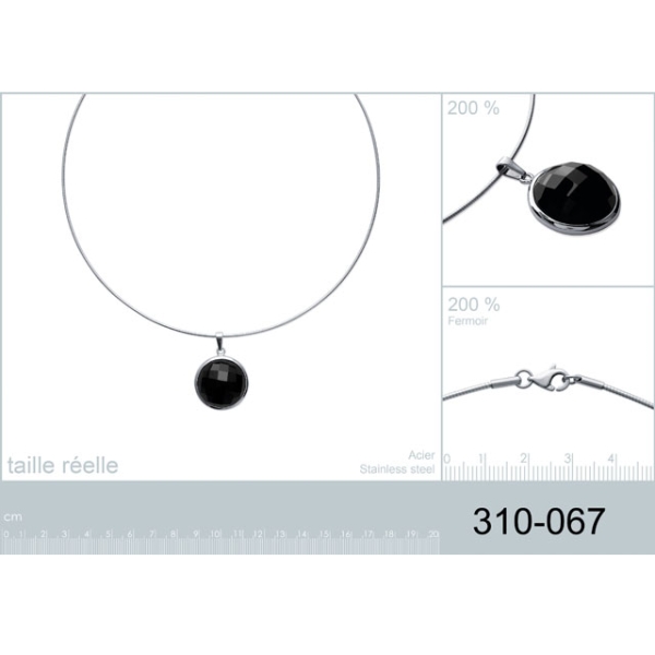 Collier en acier et pierre synthétique.