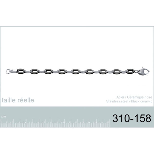 Description Bracelet en acier et céramique. Longueur 19 cm [Guide des tailles] Largeur 8 mm Matière(s) Acier , Céramique . L'acier utilisé dans la bijouterie existe sous plusieurs qualités. Nous utilisons principalement la qualité 316L, qualité qui est utilisée en chirurgie. Cet acier est donc inoxydable et reste très résistant. Fermoir Mousqueton Couleur(s) dominante(s) Noir Public Adulte . Genre Femme . Saison Indémodable . Rayon en magasin T45 Cliquez sur une matière, un thème, une couleur ou une collection pour voir tous les articles associés.