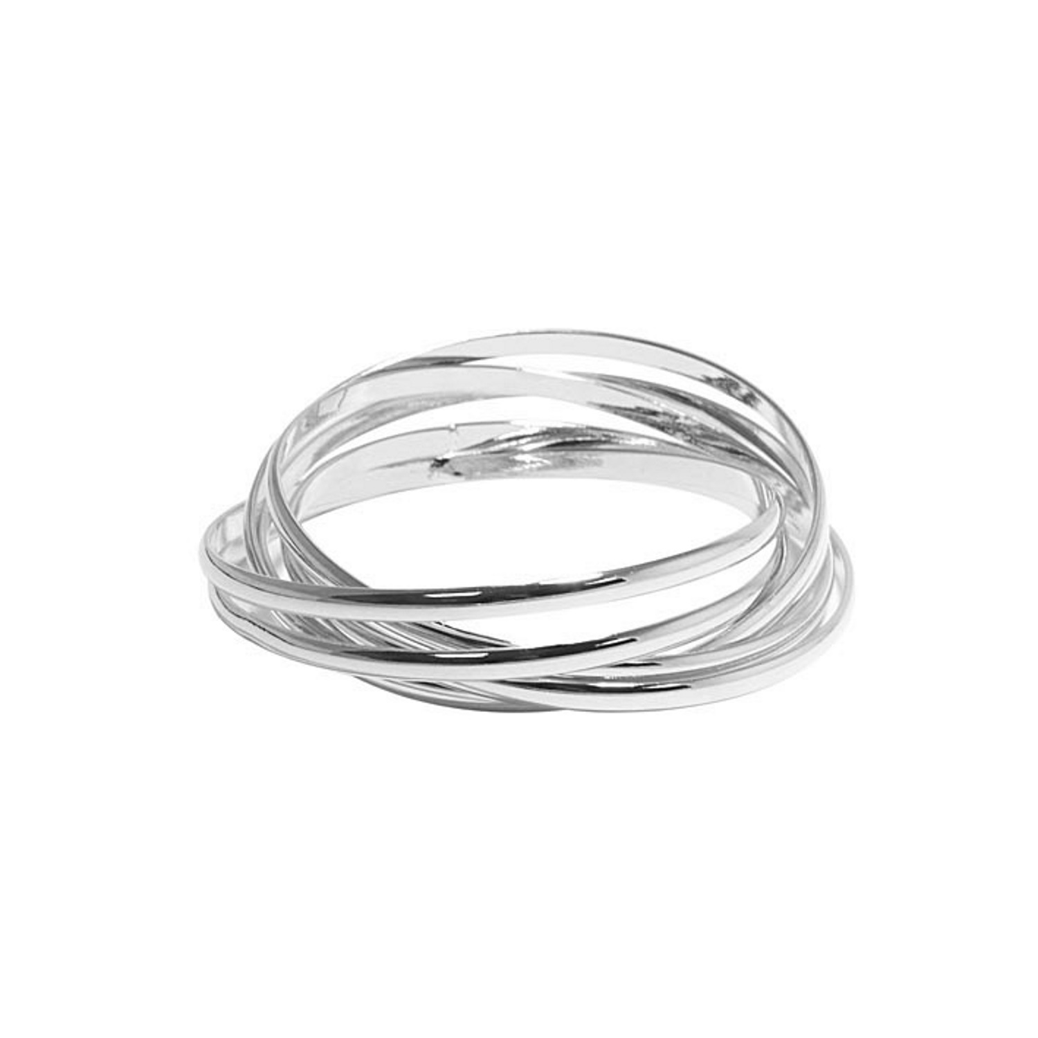 Lot de 6 bracelets fantaisie rigides en métal argenté.