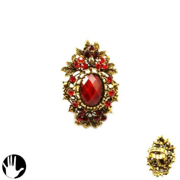 Bague fantaisie en métal doré vieilli et verre.