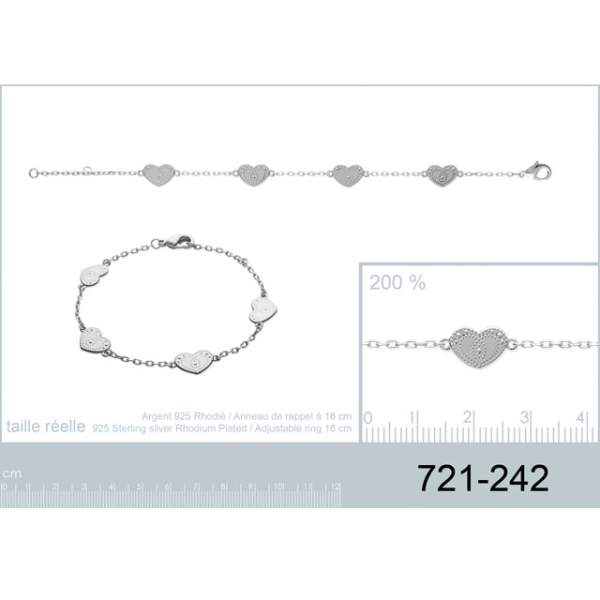 Description Bracelet en argent 925/000 rhodié. Longueur 16/18 cm [Guide des tailles] Largeur 8 mm Matière(s) Argent 925 rhodié . Afin de protéger votre bijou de l'oxydation naturelle de l'argent, il est recouvert d'une couche de rhodium (un métal rare et précieux) qui garantira sa brillance dans le temps et préviendra les risques d'allergie. Notez cependant, que le bijou est alors d'une teinte plus grisée et moins brillante que l'argent non rhodié. Poids d'argent 2,56 gramme(s) Fermoir Mousqueton Couleur(s) dominante(s) Argenté Public Adulte . Genre Femme . Saison Indémodable . Thème(s) Amour . Collection So Lovely Cliquez sur une matière, un thème, une couleur ou une collection pour voir tous les articles associés.