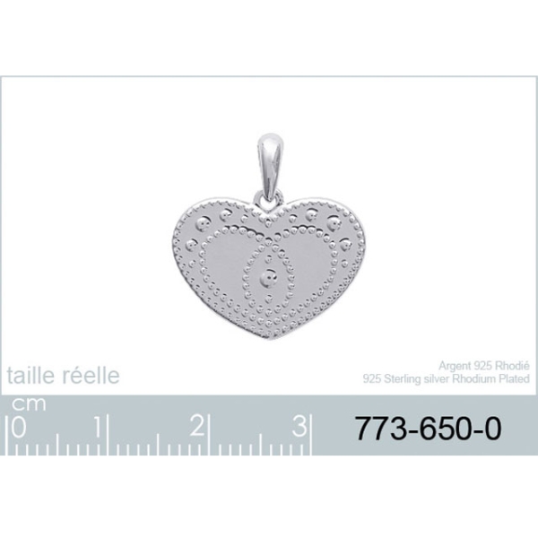 Description Pendentif en argent 925/000 rhodié. Largeur 19 mm Hauteur 14 mm Matière(s) Argent 925 rhodié . Afin de protéger votre bijou de l'oxydation naturelle de l'argent, il est recouvert d'une couche de rhodium (un métal rare et précieux) qui garantira sa brillance dans le temps et préviendra les risques d'allergie. Notez cependant, que le bijou est alors d'une teinte plus grisée et moins brillante que l'argent non rhodié. Poids d'argent 1,24 gramme(s) Couleur(s) dominante(s) Argenté Public Adulte . Genre Femme . Saison Indémodable . Thème(s) Amour . Collection So Lovely Cliquez sur une matière, un thème, une couleur ou une collection pour voir tous les articles associés.
