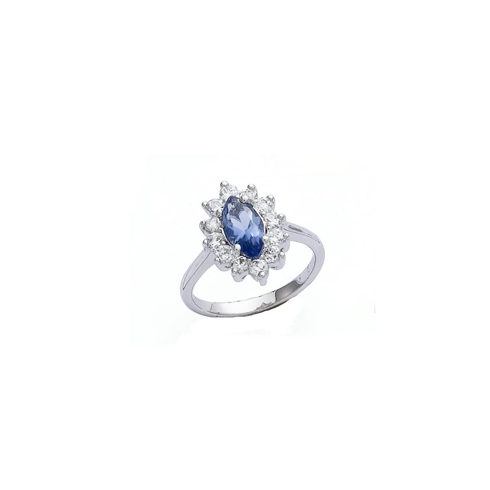 Bague marquise en argent 925/000 rhodié, verre et oxyde de zirconium.