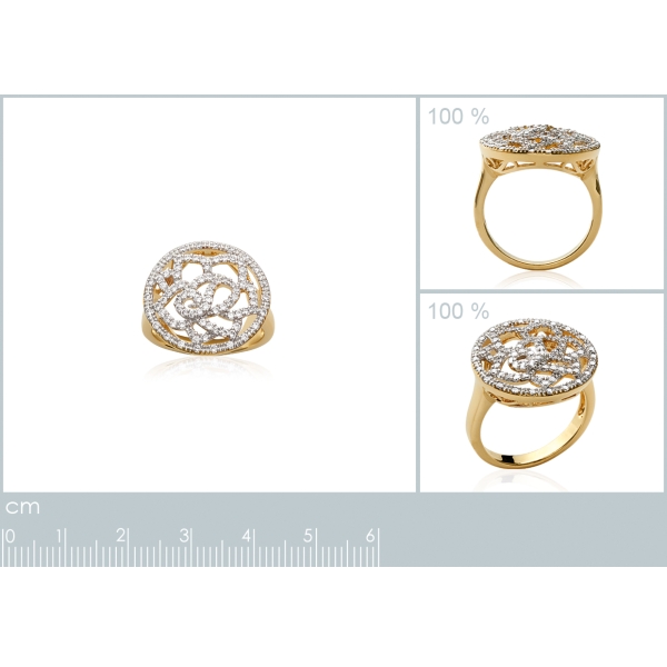 Bague en plaqué or et oxyde de zirconium. Large Rond  Adulte Femme Fleurs