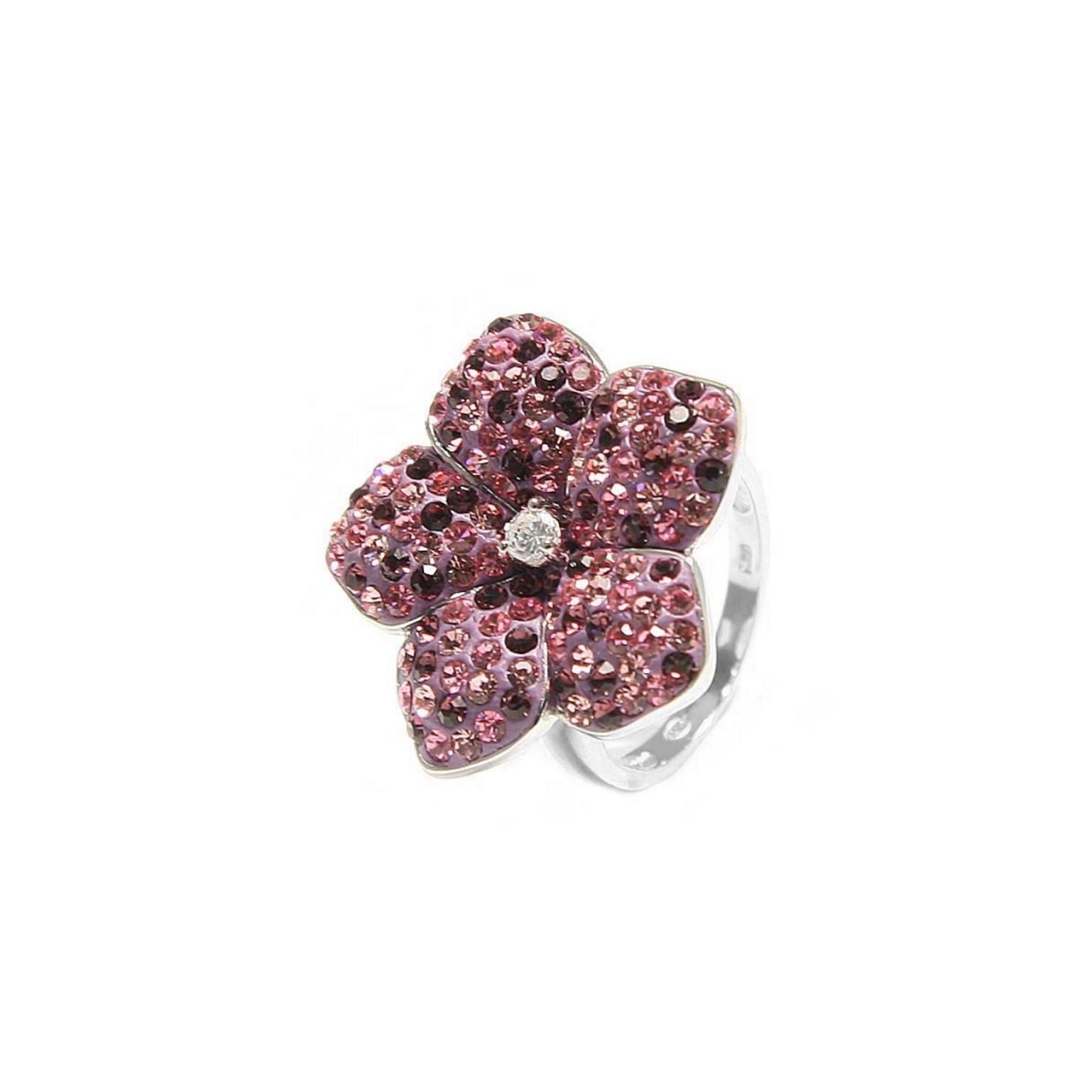 Bague en argent 925/000 rhodié, oxyde de zirconium et cristal swarowski. Large  Adulte Femme Fleurs Indémodable