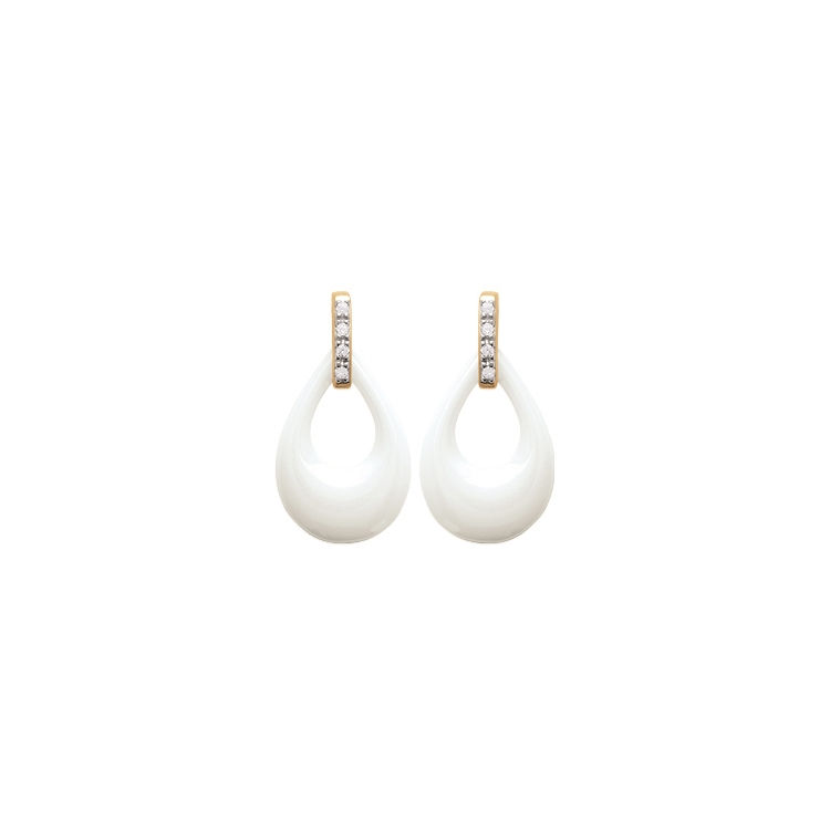 Boucles d'oreilles en plaqué or, oxyde de zirconium et céramique.
