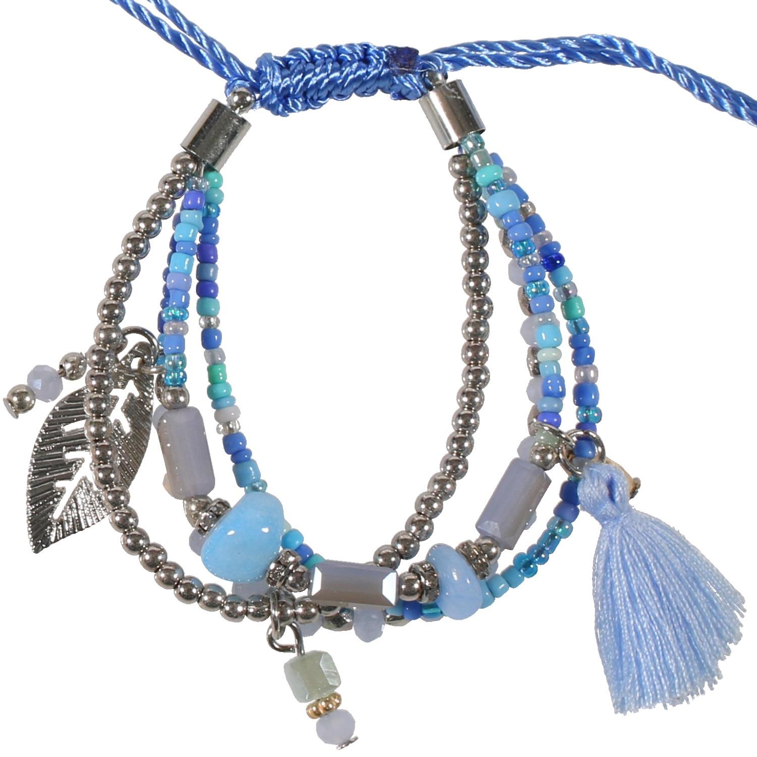 Bracelet fantaisie en métal doré, métal argenté, textile, rocaille et résine.