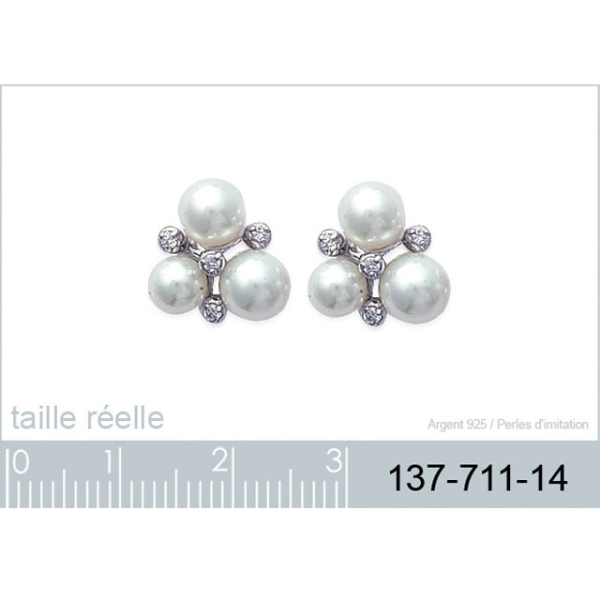 Boucles d'oreilles en argent 925/000 rhodié et perles d'imitation.