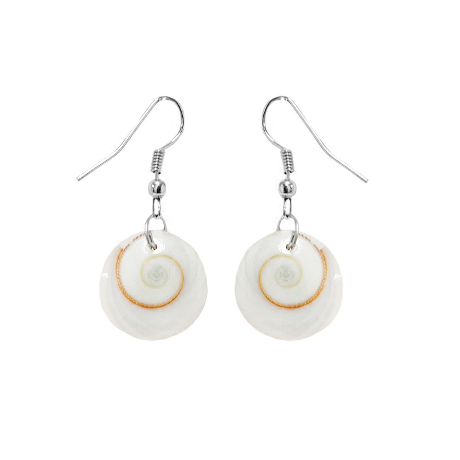 Boucles d'oreilles fantaisie en métal argenté et coquillage.