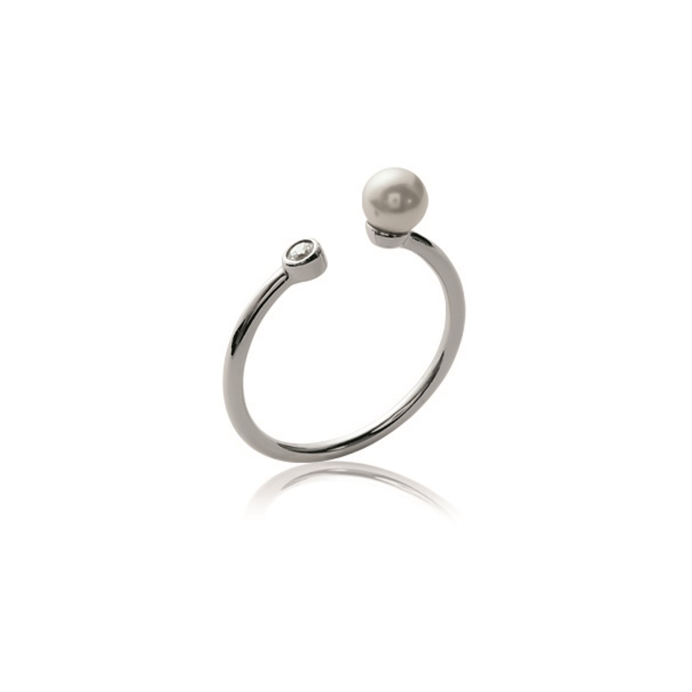 Bague en argent 925/000 rhodié, oxyde de zirconium et perle synthétique.