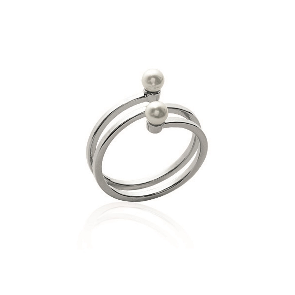 Bague en argent 925/000 rhodié et perles synthétiques.