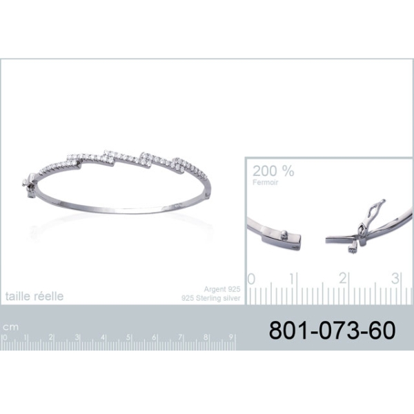 Description Bracelet en argent 925/000 rhodié et oxyde de zirconium. Fermoir avec sécurité. Largeur 4 mm Diamètre 60 mm [Guide des tailles] Matière(s) Argent 925 rhodié , Zirconium . Afin de protéger votre bijou de l'oxydation naturelle de l'argent, il est recouvert d'une couche de rhodium (un métal rare et précieux) qui garantira sa brillance dans le temps et préviendra les risques d'allergie. Notez cependant, que le bijou est alors d'une teinte plus grisée et moins brillante que l'argent non rhodié. Poids d'argent 10,62 gramme(s) Fermoir Autre Couleur(s) dominante(s) Argenté , Multicolore , Transparent Public Adulte . Genre Femme . Saison Indémodable . Cliquez sur une matière, un thème, une couleur ou une collection pour voir tous les articles associés.