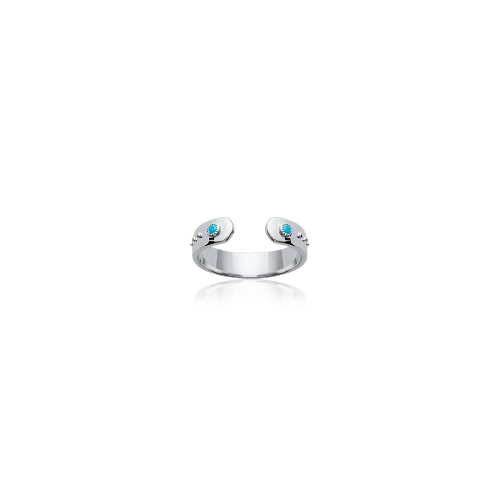 Bague ouverte en argent 925/000 rhodié et turquoise synthétique.