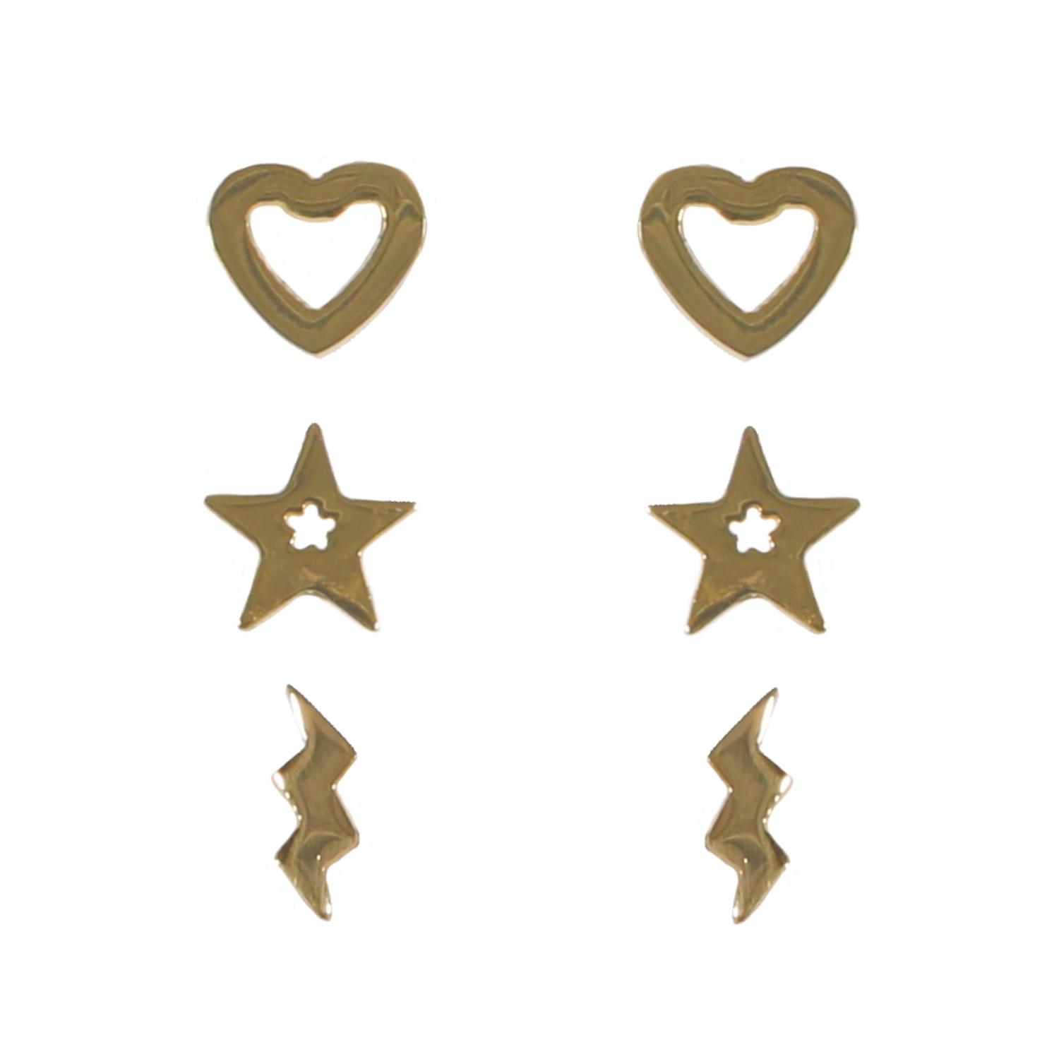 Carte de 3 paires de boucles d'oreilles en métal doré.