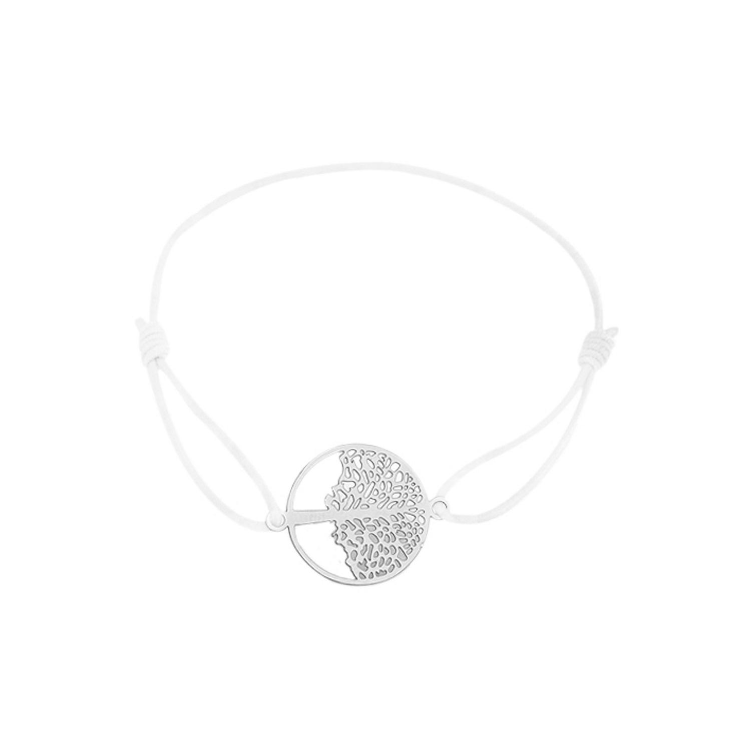 Bracelet en acier argenté et coton.
