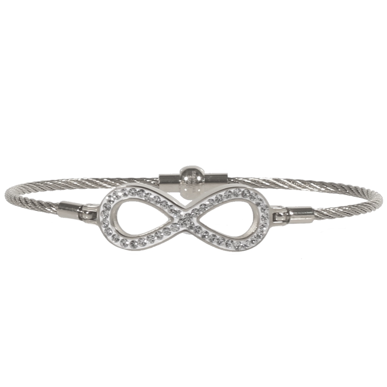 Bracelet jonc semi-rigide Infini en acier argenté et verre.