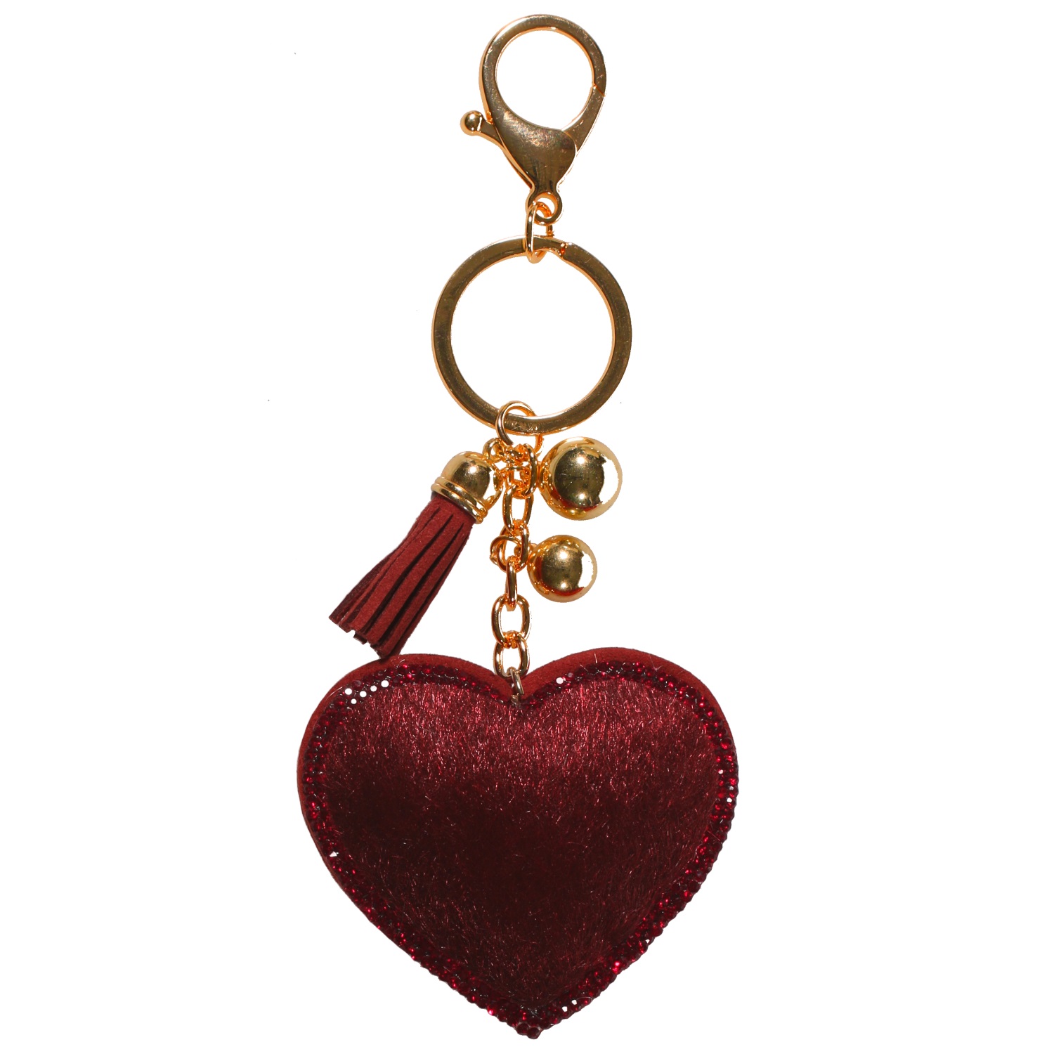 Porte-clés Cœur en métal doré, suédine, textile et cristaux synthétiques.