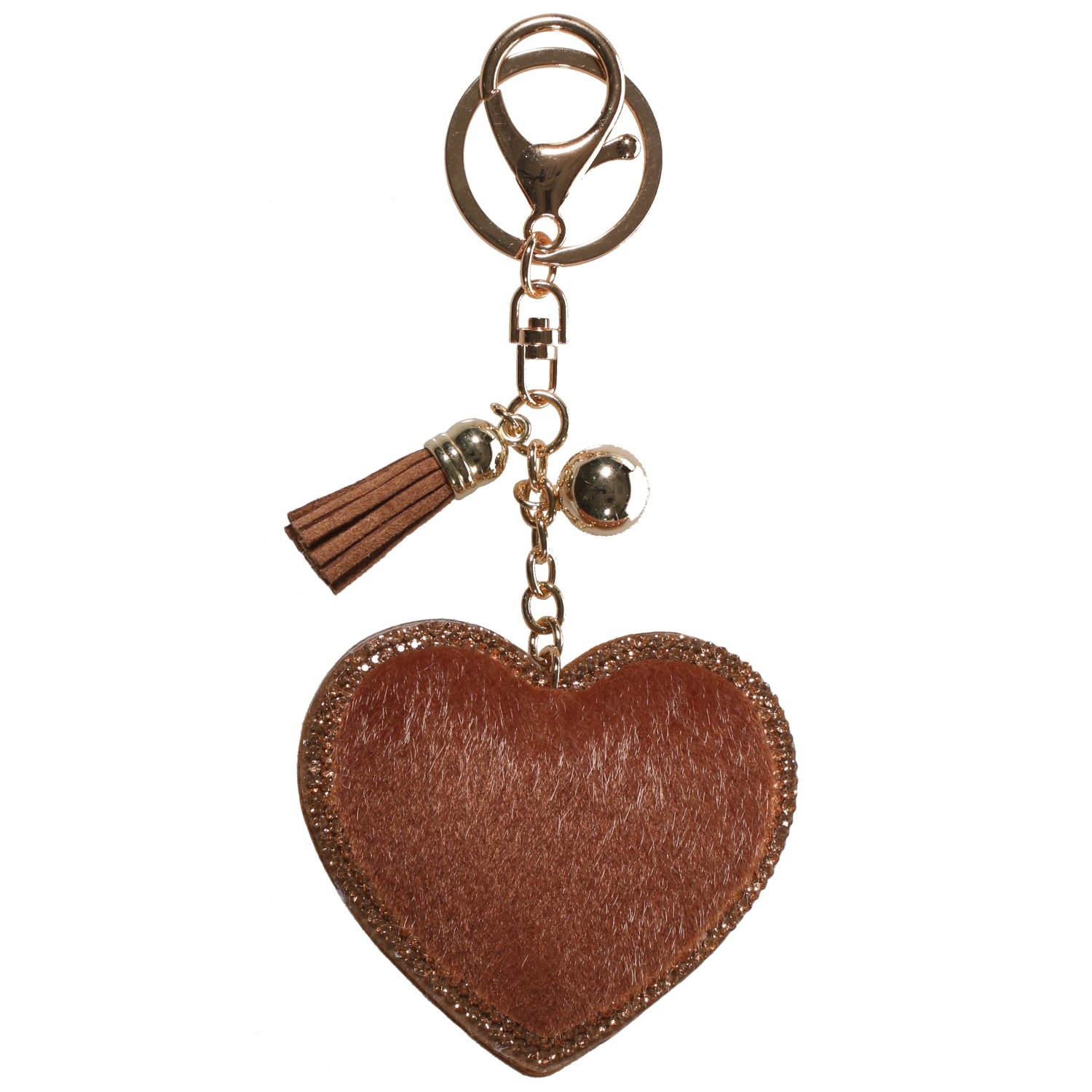 Porte-clés Cœur en métal doré, suédine, textile et cristaux synthétiques.