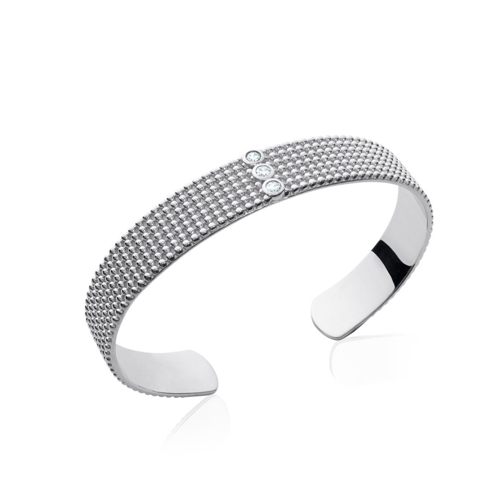 Description Bracelet jonc en argent 925/000 rhodié et oxyde de zirconium. Largeur 10 mm Diamètre 58 mm [Guide des tailles] Matière(s) Argent 925 rhodié , Zirconium . Afin de protéger votre bijou de l'oxydation naturelle de l'argent, il est recouvert d'une couche de rhodium (un métal rare et précieux) qui garantira sa brillance dans le temps et préviendra les risques d'allergie. Notez cependant, que le bijou est alors d'une teinte plus grisée et moins brillante que l'argent non rhodié. Poids d'argent 20,03 gramme(s) Fermoir Aucun Couleur(s) dominante(s) Argenté Public Adolescent , Adulte . Genre Femme , Fille . Saison Indémodable . Collection Twins Cliquez sur une matière, un thème, une couleur ou une collection pour voir tous les articles associés.