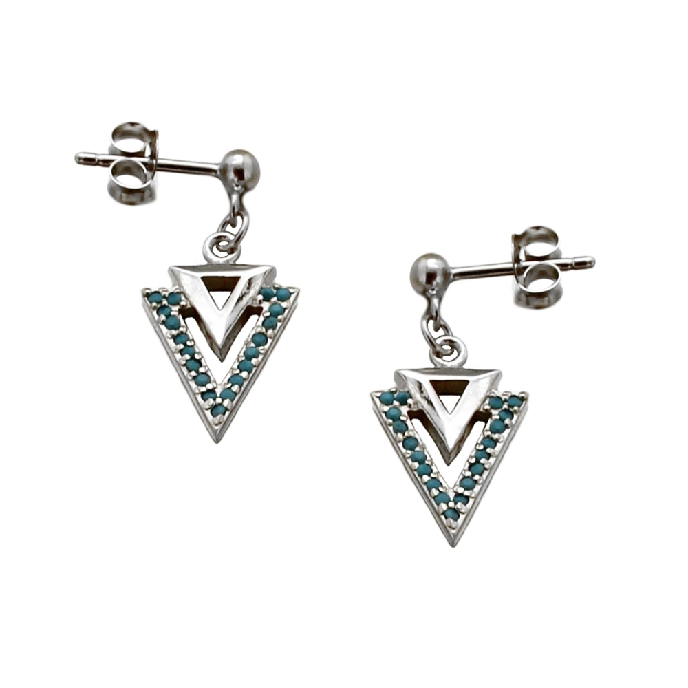 Boucles d'oreilles Triangles en argent 925/000 rhodié et pierre d'imitation turquoise.
