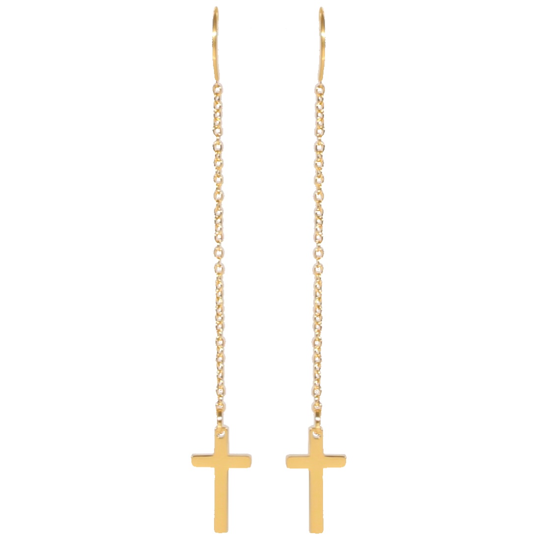 Description Boucles d'oreilles Croix en acier. Largeur 8 mm Hauteur 70 mm Matière(s) Acier . L'acier utilisé dans la bijouterie existe sous plusieurs qualités. Nous utilisons principalement la qualité 316L, qualité qui est utilisée en chirurgie. Cet acier est donc inoxydable et reste très résistant. Fermoir Crochets Couleur(s) dominante(s) Doré Public Adolescent , Adulte . Genre Femme , Fille . Saison Indémodable . Thème(s) Religion . Cliquez sur une matière, un thème, une couleur ou une collection pour voir tous les articles associés.