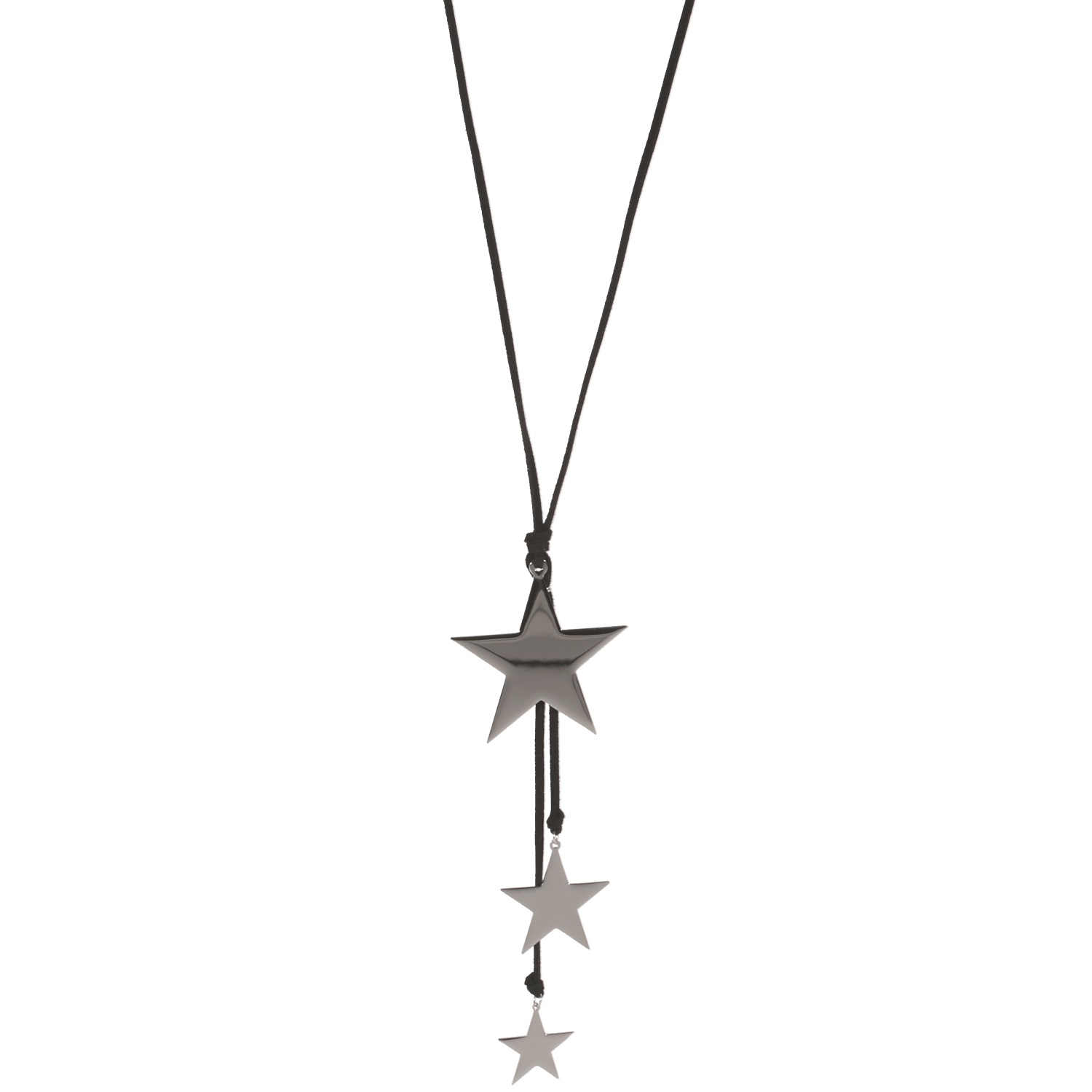 Collier sautoir en suédine et Etoiles en acier argenté.