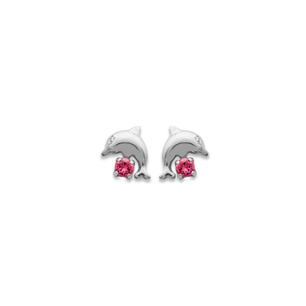 Boucles d'oreilles Dauphins en argent 925/000 rhodié et cristal rose.
