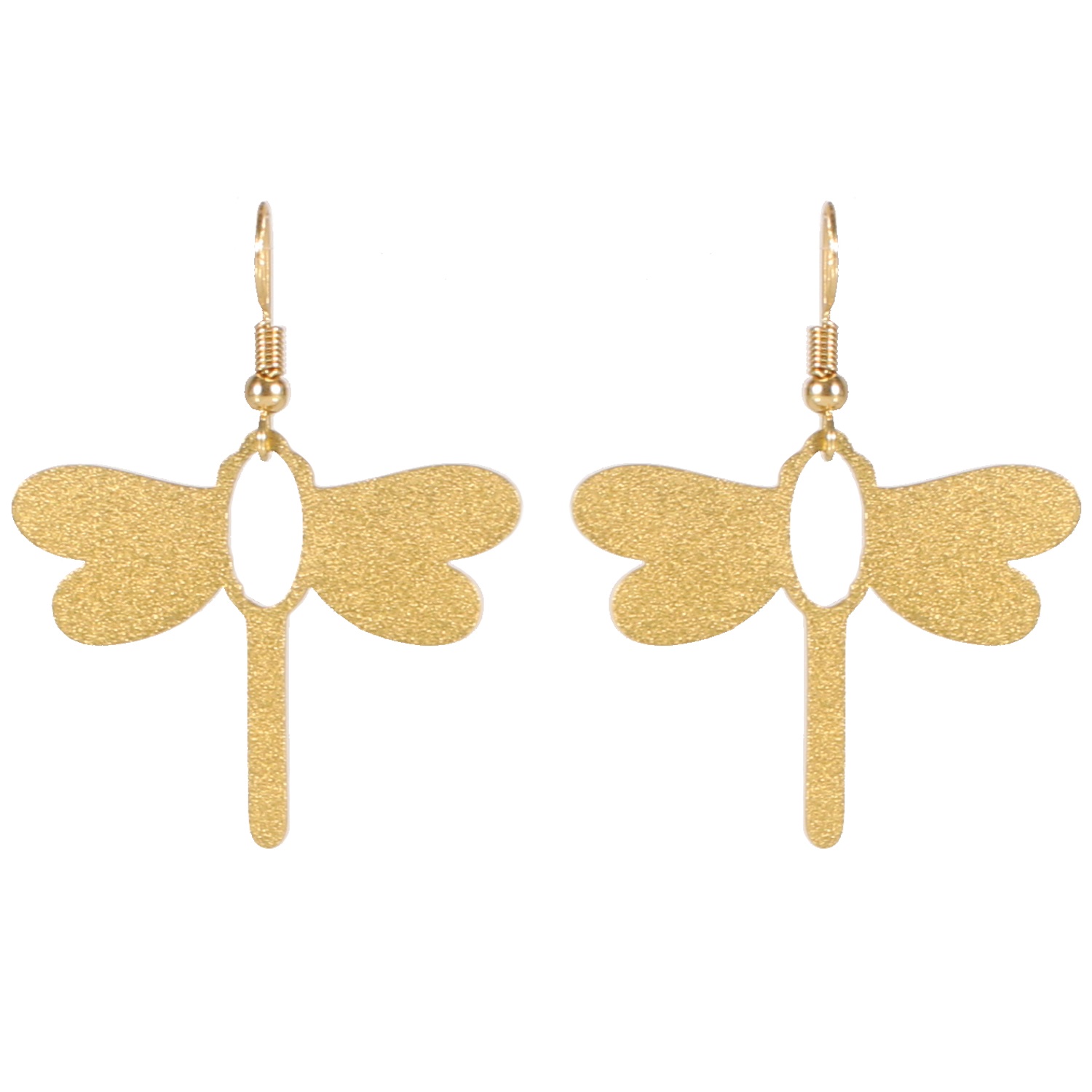 Boucles d'oreilles fantaisie pendantes Libellule en métal doré.