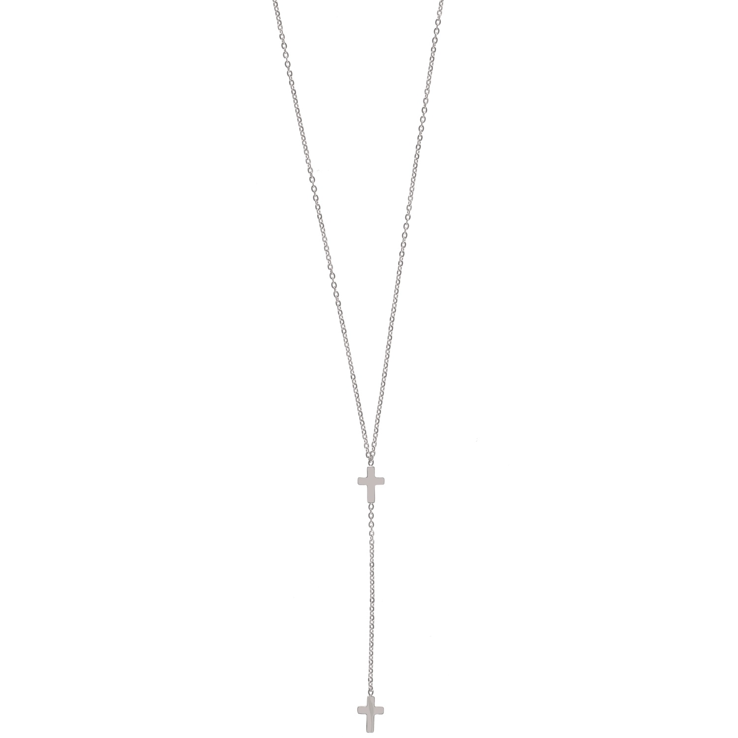 Description Collier en forme Y avec croix en acier argenté. Cliquez sur une matière, un thème, une couleur ou une collection pour voir tous les articles associés.