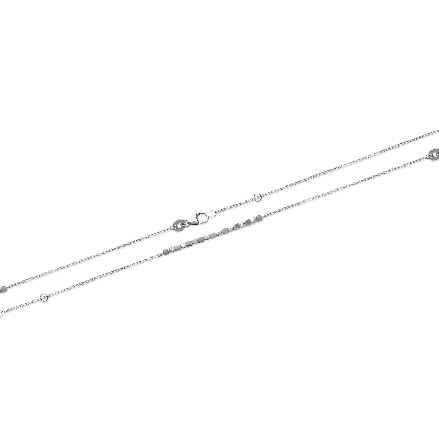 Description Bracelet en argent 925/000 rhodié et oxydes de zirconium. Longueur 16/18 cm [Guide des tailles] Largeur 2 mm Matière(s) Argent 925 rhodié , Zirconium . Afin de protéger votre bijou de l'oxydation naturelle de l'argent, il est recouvert d'une couche de rhodium (un métal rare et précieux) qui garantira sa brillance dans le temps et préviendra les risques d'allergie. Notez cependant, que le bijou est alors d'une teinte plus grisée et moins brillante que l'argent non rhodié. Poids d'argent 1,76 gramme(s) Fermoir Mousqueton Couleur(s) dominante(s) Argenté Public Adolescent , Adulte . Genre Femme , Fille . Saison Indémodable . Collection Silvery cubism Rayon en magasin TA Cliquez sur une matière, un thème, une couleur ou une collection pour voir tous les articles associés.