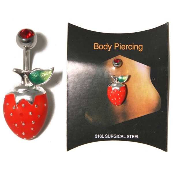 Piercing en acier chirurgical 316L.<br/>Fraise. Fraise  Adulte Femme Fruits Indémodable