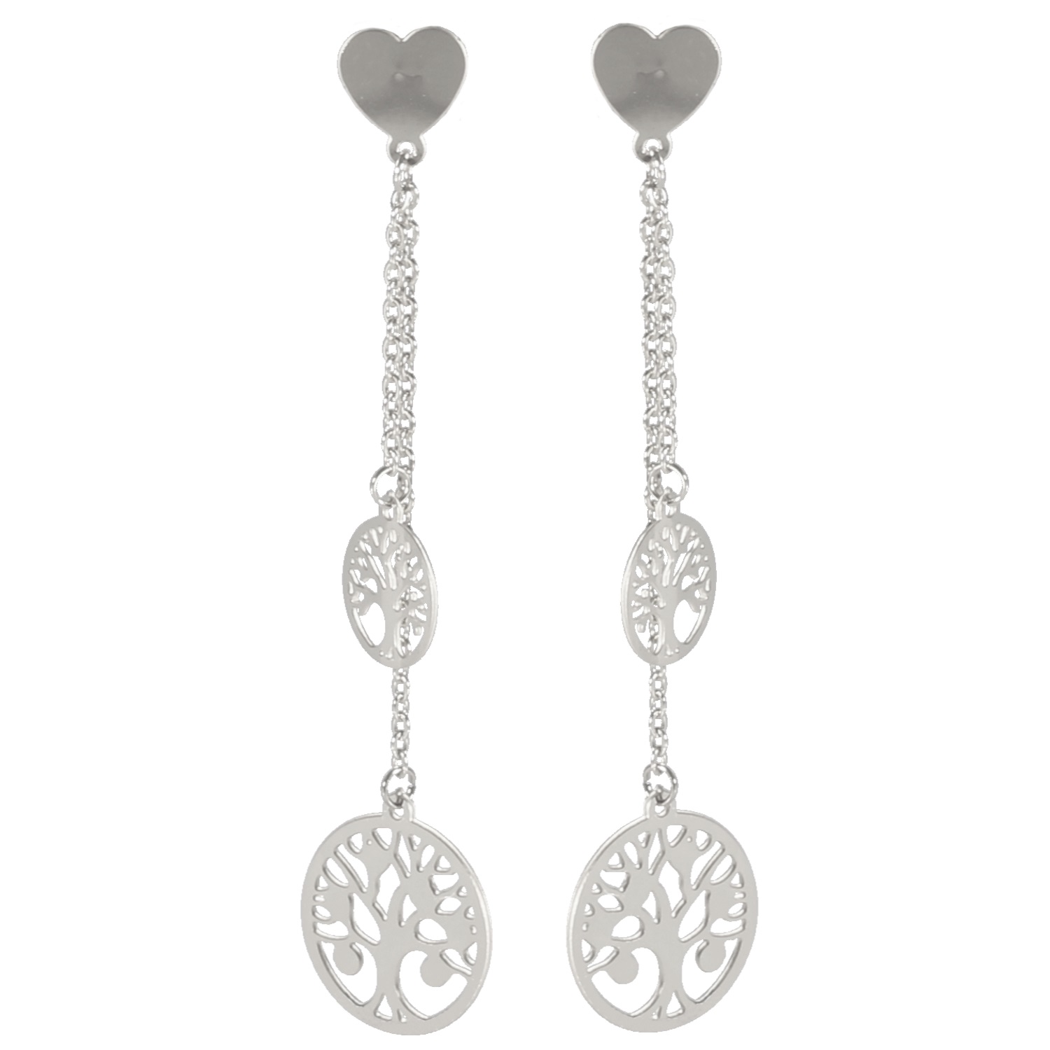 Description Boucles d'oreilles pendantes avec cœurs et arbres de vie en acier argenté et cristaux en verre. Largeur 15 mm Hauteur 67 mm Matière(s) Acier , Verre . L'acier utilisé dans la bijouterie existe sous plusieurs qualités. Nous utilisons principalement la qualité 316L, qualité qui est utilisée en chirurgie. Cet acier est donc inoxydable et reste très résistant. Fermoir Tiges poussettes Couleur(s) dominante(s) Argenté Public Adolescent , Adulte . Genre Femme , Fille . Saison Indémodable . Thème(s) Amour , Symboles . Cliquez sur une matière, un thème, une couleur ou une collection pour voir tous les articles associés.