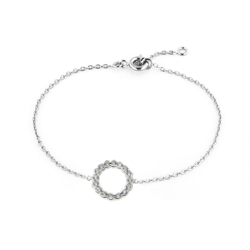 Description Bracelet avec cercle en argent 925/000 rhodié et oxydes de zirconium. Longueur 15.5/17.5 cm [Guide des tailles] Largeur 11 mm Matière(s) Argent 925 rhodié , Zirconium . Afin de protéger votre bijou de l'oxydation naturelle de l'argent, il est recouvert d'une couche de rhodium (un métal rare et précieux) qui garantira sa brillance dans le temps et préviendra les risques d'allergie. Notez cependant, que le bijou est alors d'une teinte plus grisée et moins brillante que l'argent non rhodié. Poids d'argent 2 gramme(s) Fermoir Anneau ressort Couleur(s) dominante(s) Argenté Public Adolescent , Adulte . Genre Femme , Fille . Saison Indémodable . Rayon en magasin T144 Cliquez sur une matière, un thème, une couleur ou une collection pour voir tous les articles associés.
