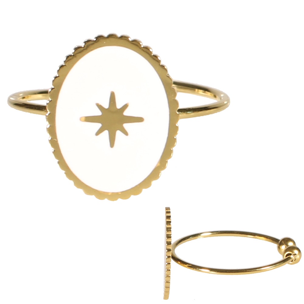 Description Bague avec étoile en acier doré et émail. Largeur 9 mm Matière(s) Acier , Email . L'acier utilisé dans la bijouterie existe sous plusieurs qualités. Nous utilisons principalement la qualité 316L, qualité qui est utilisée en chirurgie. Cet acier est donc inoxydable et reste très résistant. Fermoir Aucun À noter Taille ajustable Couleur(s) dominante(s) Blanc , Doré Public Adolescent , Adulte . Genre Femme , Fille . Saison Indémodable . Thème(s) Nature . Collection Isabella Cliquez sur une matière, un thème, une couleur ou une collection pour voir tous les articles associés.