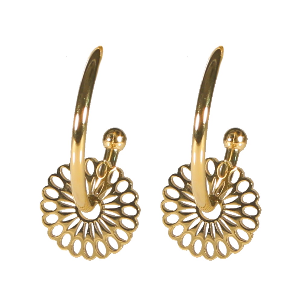 Description Boucles d'oreilles créoles avec pastilles ajouré motif fleur en acier doré. Largeur 12 mm Hauteur 25 mm Diamètre 15 mm Matière(s) Acier . L'acier utilisé dans la bijouterie existe sous plusieurs qualités. Nous utilisons principalement la qualité 316L, qualité qui est utilisée en chirurgie. Cet acier est donc inoxydable et reste très résistant. Fermoir Tiges poussettes Couleur(s) dominante(s) Doré Public Adolescent , Adulte . Genre Femme , Fille . Saison Indémodable . Thème(s) Fleurs . Cliquez sur une matière, un thème, une couleur ou une collection pour voir tous les articles associés.