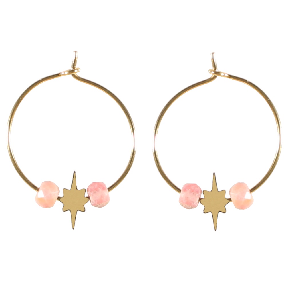 Description Boucles d'oreilles créoles avec étoiles en acier doré et perles de couleur. Hauteur 24 mm Diamètre 18 mm Matière(s) Acier , Rocaille . L'acier utilisé dans la bijouterie existe sous plusieurs qualités. Nous utilisons principalement la qualité 316L, qualité qui est utilisée en chirurgie. Cet acier est donc inoxydable et reste très résistant. Fermoir Autre Couleur(s) dominante(s) Doré , Rose Public Adolescent , Adulte . Genre Femme , Fille . Saison Indémodable . Thème(s) Nature . Collection Astre sublime Cliquez sur une matière, un thème, une couleur ou une collection pour voir tous les articles associés.