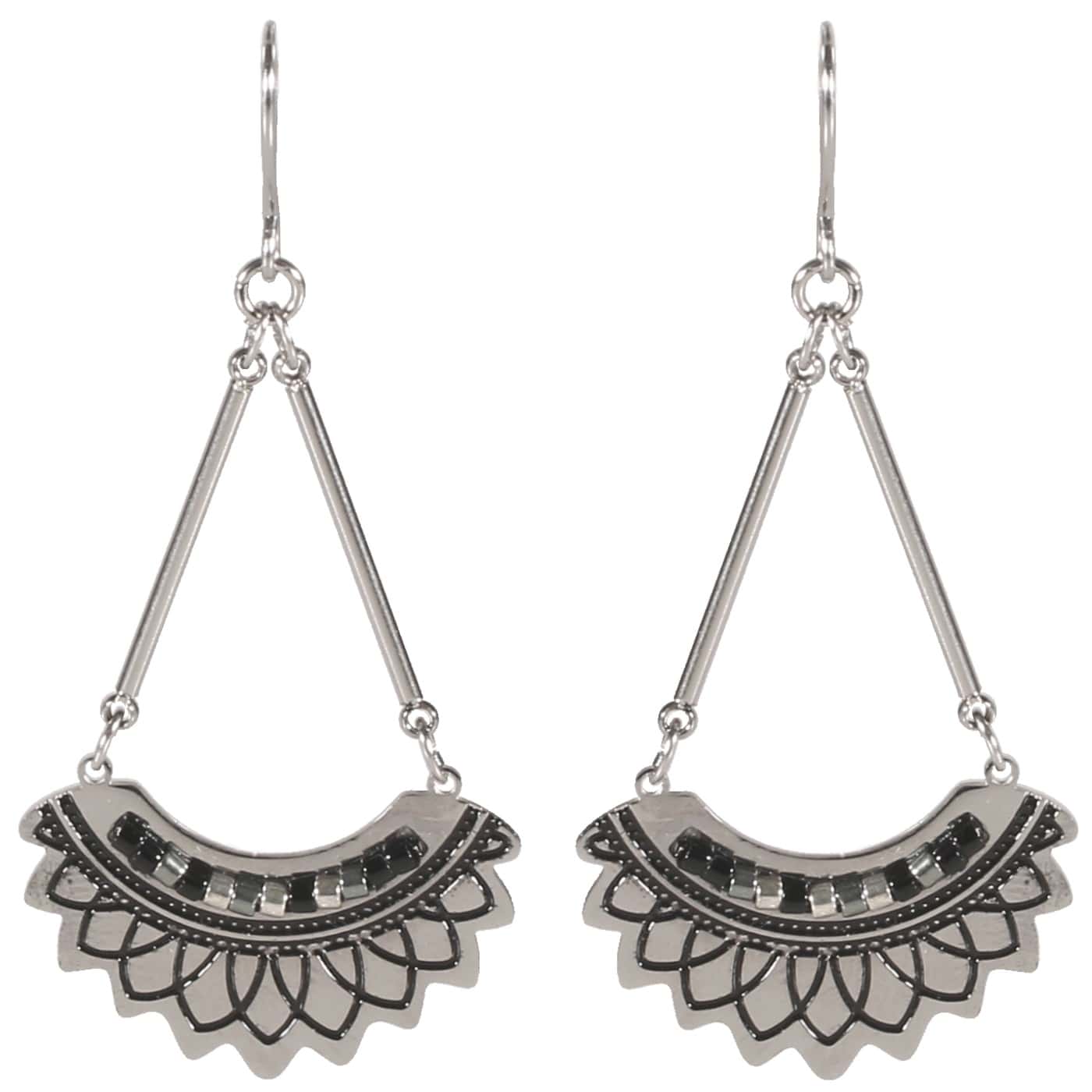 Description Boucles d'oreilles pendantes en acier argenté et émail. Largeur 25 mm Hauteur 50 mm Matière(s) Acier , Email . L'acier utilisé dans la bijouterie existe sous plusieurs qualités. Nous utilisons principalement la qualité 316L, qualité qui est utilisée en chirurgie. Cet acier est donc inoxydable et reste très résistant. Fermoir Crochets Couleur(s) dominante(s) Argenté , Noir Public Adolescent , Adulte . Genre Femme , Fille . Saison Eté . Collection Indian spirit Cliquez sur une matière, un thème, une couleur ou une collection pour voir tous les articles associés.