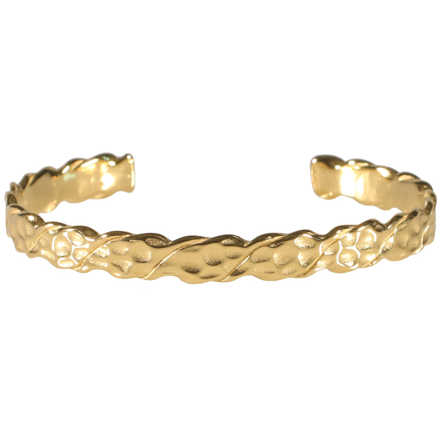 Description Bracelet jonc rigide ouvert à l'effet martelé en acier doré. Largeur 8 mm Diamètre 65 mm [Guide des tailles] Matière(s) Acier . L'acier utilisé dans la bijouterie existe sous plusieurs qualités. Nous utilisons principalement la qualité 316L, qualité qui est utilisée en chirurgie. Cet acier est donc inoxydable et reste très résistant. Fermoir Aucun Couleur(s) dominante(s) Doré Public Adolescent , Adulte . Genre Femme , Fille . Saison Indémodable . Collection Reflets Cliquez sur une matière, un thème, une couleur ou une collection pour voir tous les articles associés.