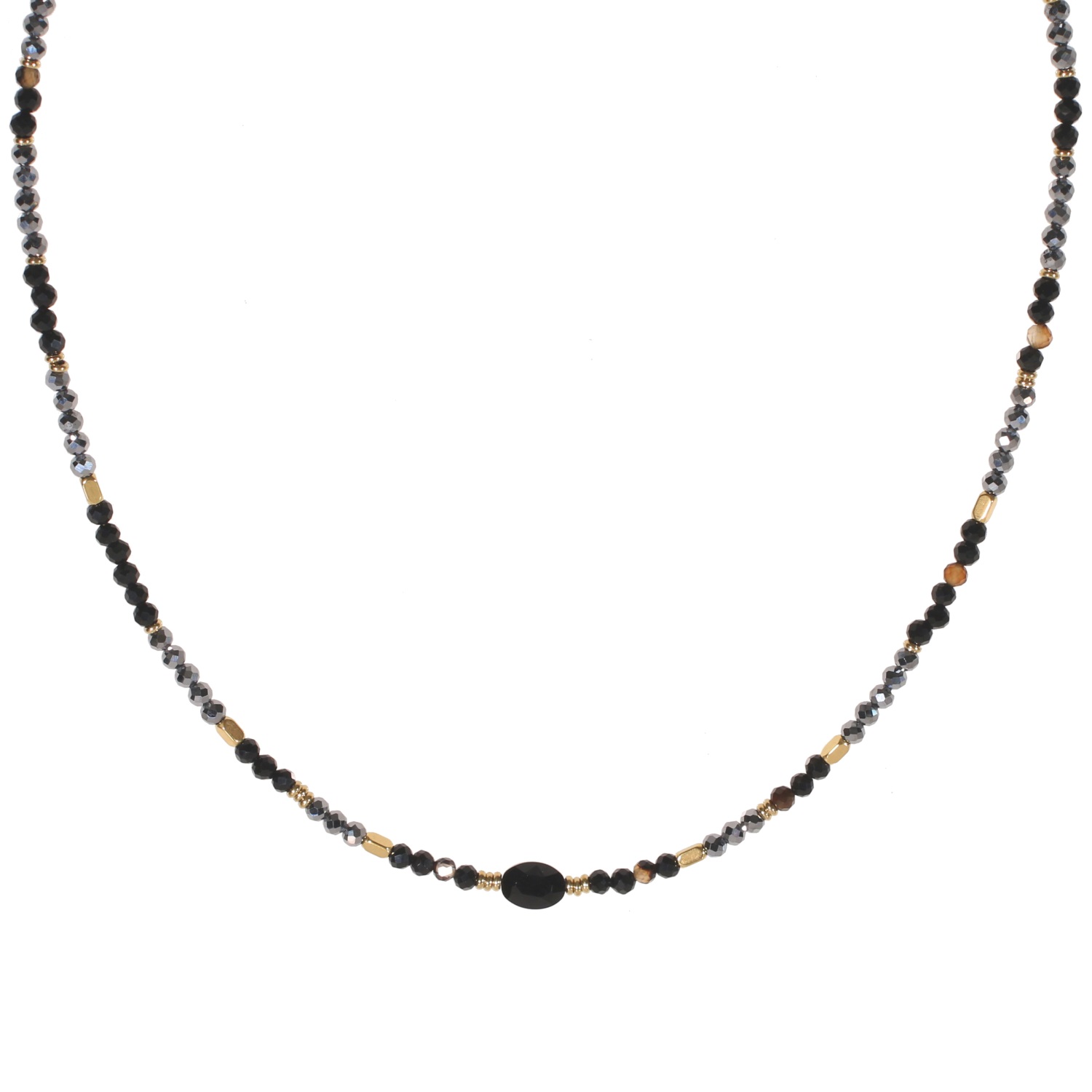 Collier composé de perles en véritable pierre d'agate et pierre Terahertz grise.