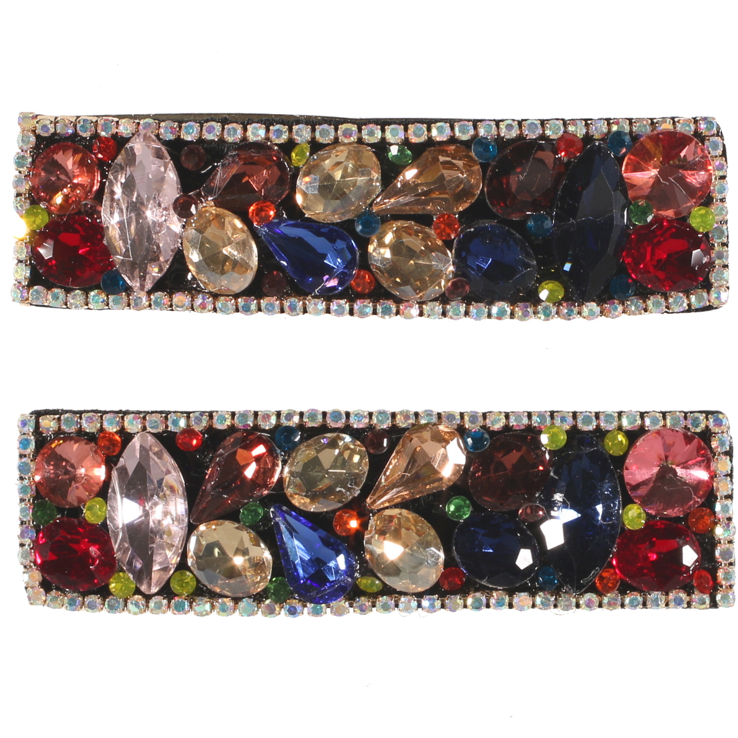 Description Lot de 2 pinces en métal doré pavées de strass et cristaux de couleur. Cliquez sur une matière, un thème, une couleur ou une collection pour voir tous les articles associés.