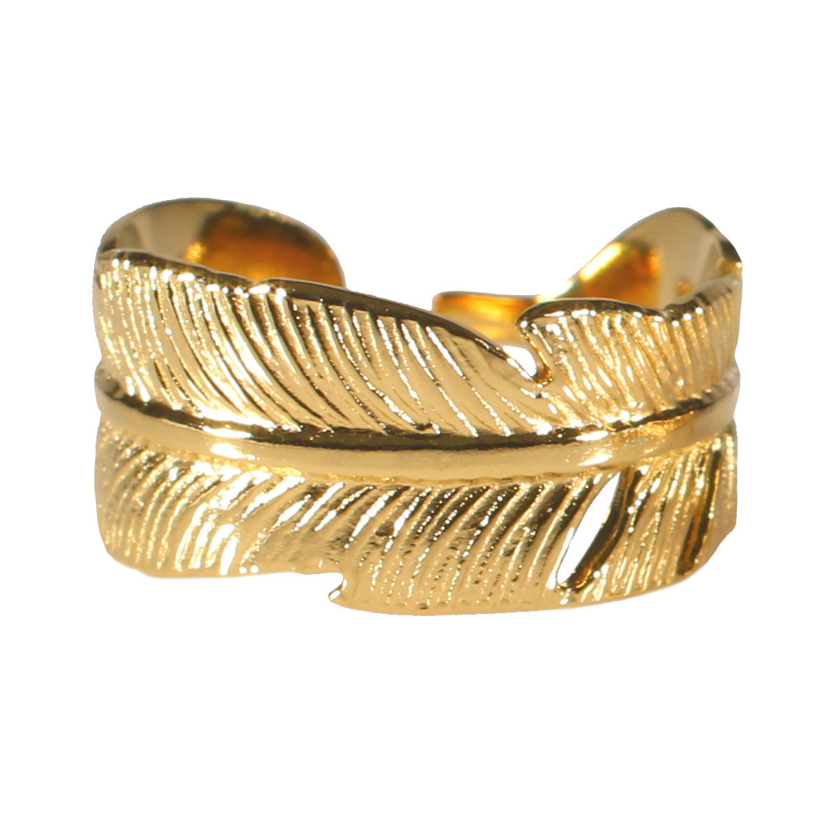 Description Bague fantaisie en forme de plume en métal doré. Taille ajustable. Cliquez sur une matière, un thème, une couleur ou une collection pour voir tous les articles associés.