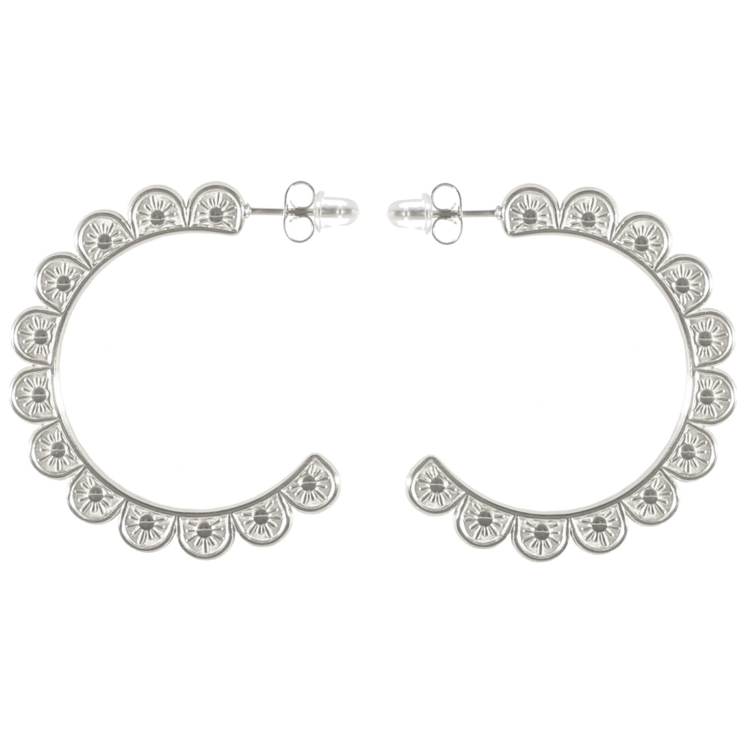 Description Boucles d'oreilles créoles ouvertes avec contour arrondi et motif d'étoiles en acier argenté. Largeur 5 mm Diamètre 30 mm [Guide des tailles] Matière(s) Acier . L'acier utilisé dans la bijouterie existe sous plusieurs qualités. Nous utilisons principalement la qualité 316L, qualité qui est utilisée en chirurgie. Cet acier est donc inoxydable et reste très résistant. Fermoir Tiges poussettes Couleur(s) dominante(s) Argenté Public Adolescent , Adulte . Genre Femme , Fille . Saison Indémodable . Thème(s) Nature . Cliquez sur une matière, un thème, une couleur ou une collection pour voir tous les articles associés.